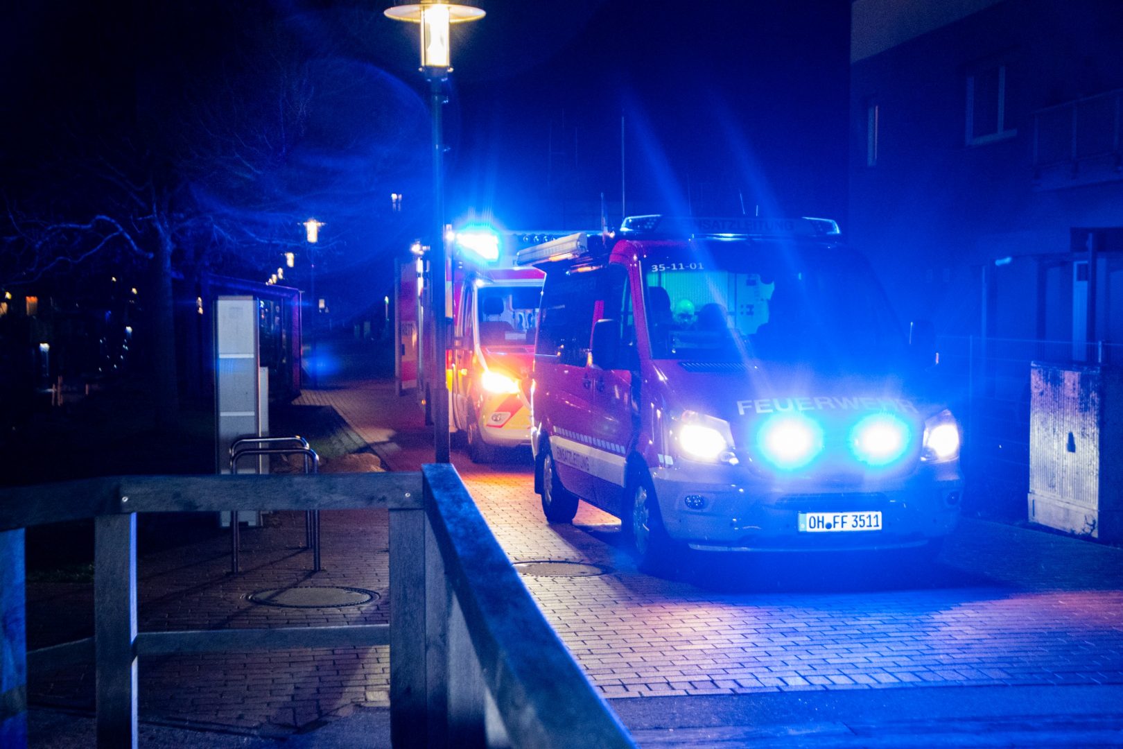 Die Feuerwehr Heiligenhafen war nur wenige Minuten später vor Ort. Die Einsatzkräfte legten Bandschlingen an, um den Mann zu sichern, während weitere Kräfte die Situation ausleuchteten und den Zugang zum Steg freihielten. Parallel näherte sich ein Rettungsboot der DGzRS, um die Einsatzkräfte vom Wasser aus zu unterstützen und eine zusätzliche Sicherung zu gewährleisten. In enger Zusammenarbeit gelang es Feuerwehr, Ersthelfern und den Seenotrettern schließlich, den Mann aus dem eiskalten Wasser auf den Steg zu ziehen. Die Koordination der vielen Kräfte – rund um die schmale Steganlage, zwischen Booten, Leinen und rutschigen Planken – machte die Rettung zu einer anspruchsvollen Teamleistung.