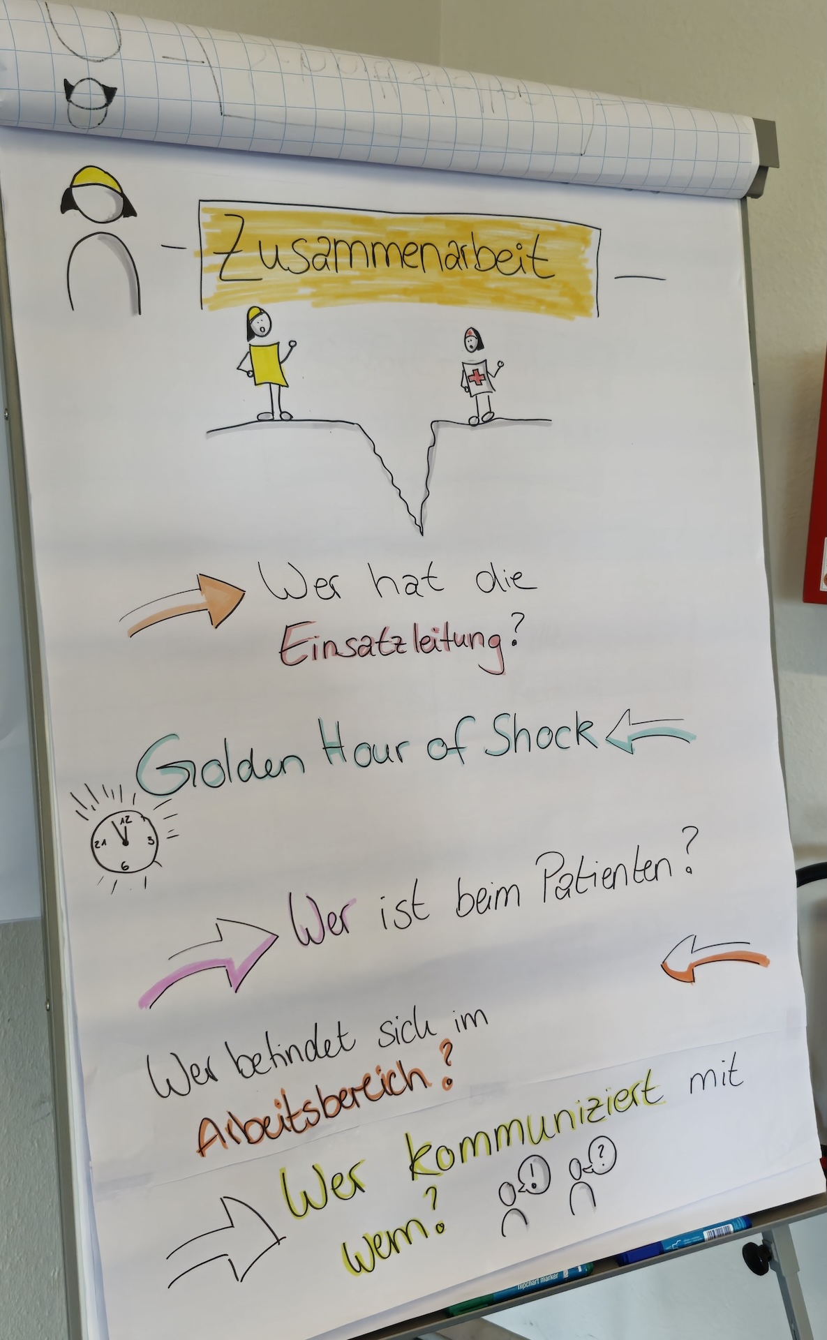 Die Teilnehmenden trainierten unter anderem den sicheren Umgang mit dem automatisierten externen Defibrillator (AED) sowie Maßnahmen der Reanimation. Ergänzt wurde das Programm durch theoretische Einheiten, die anschaulich auf Flipcharts und Pinnwänden vermittelt wurden.
